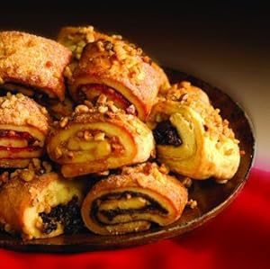 Rugelach flavors include: apricot cashew, cinnamon raisin, chocolate walnut, and raspberry walnut. 1 lb.